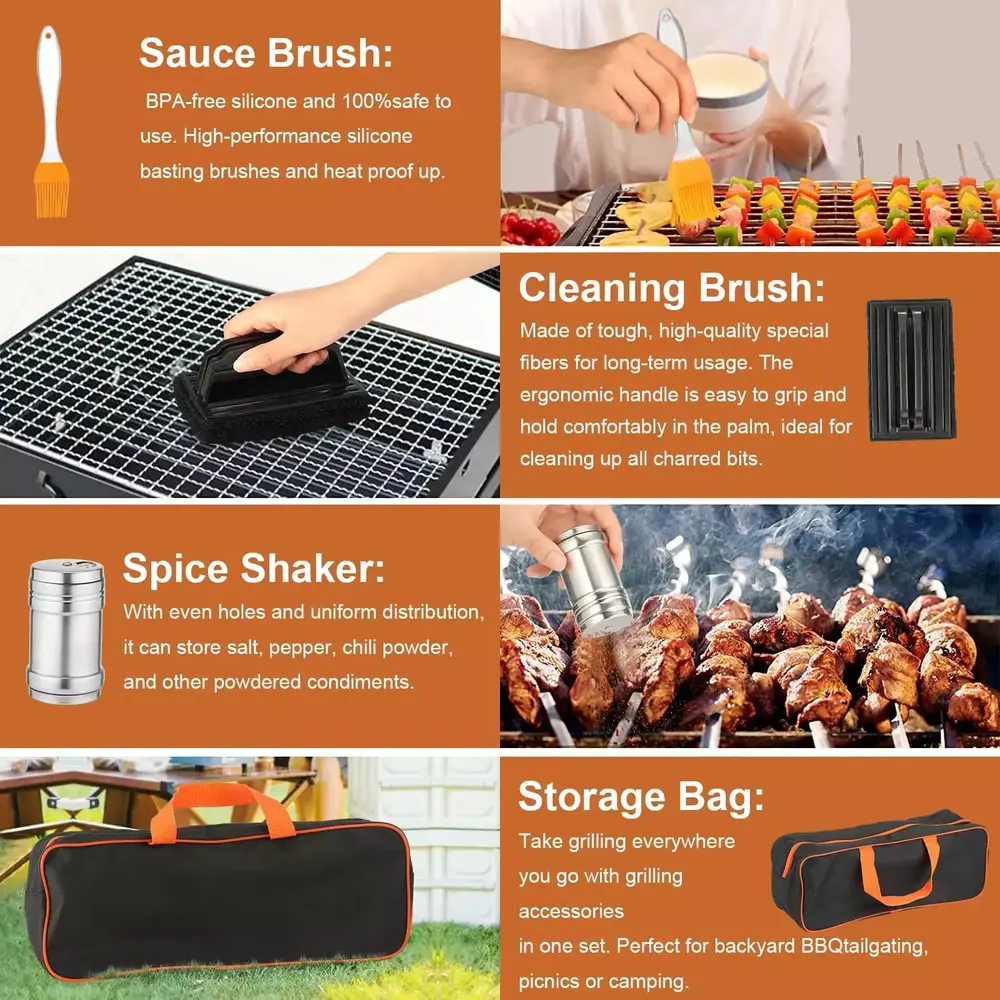 [Perfect Family Gift]This practical barbecue tools set is for most grills and suitable for indoor and outdoor cooking. whether you are in the kitchen. your backyard. or out camping. Provide a portable. professional.fantastic gift set for your family. You can enjoy BBQ time with your family and friend easily.