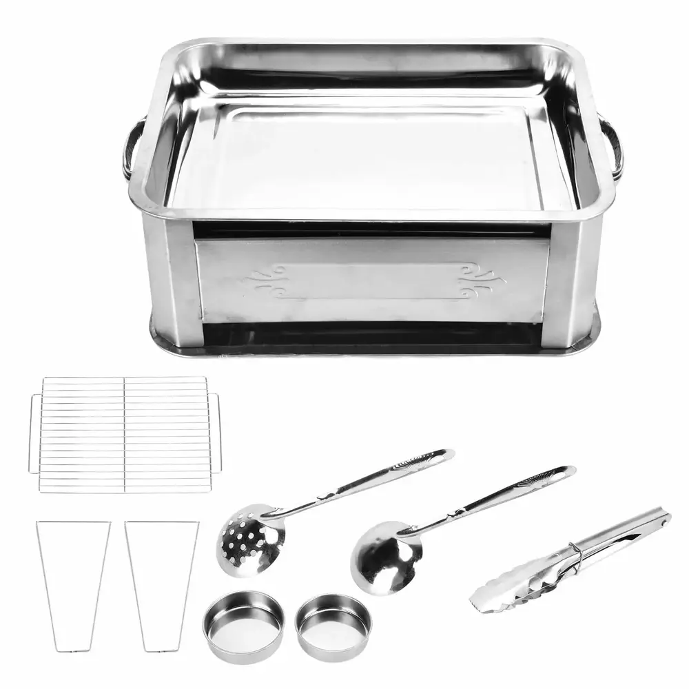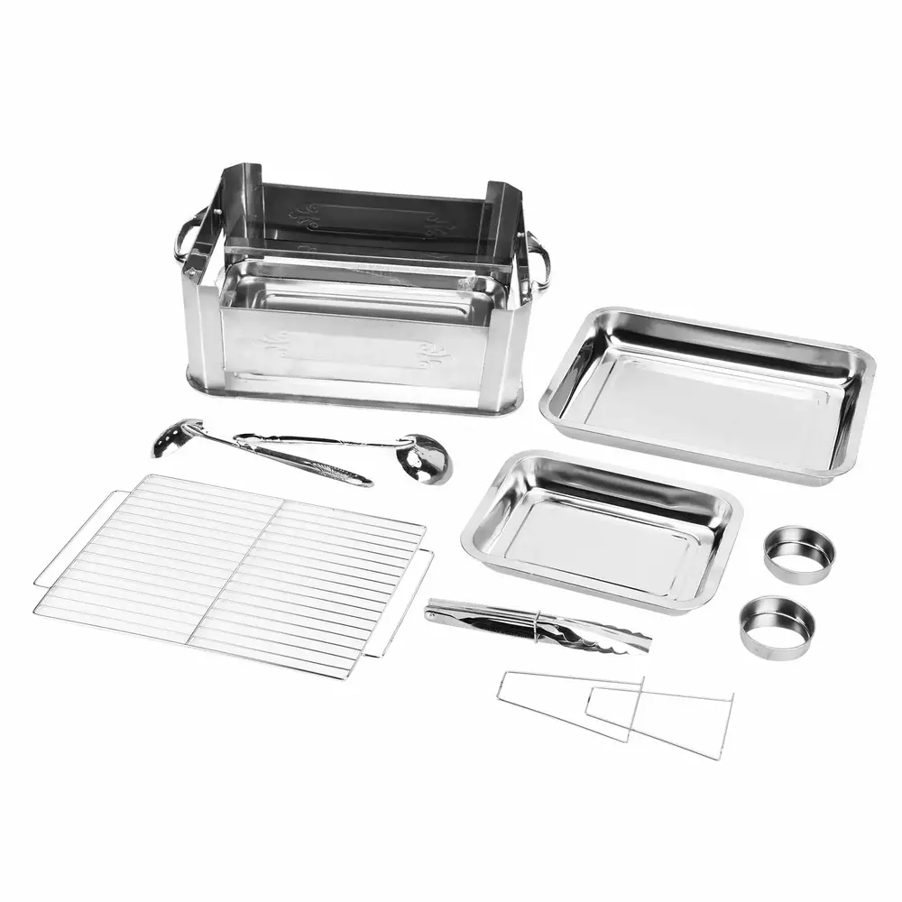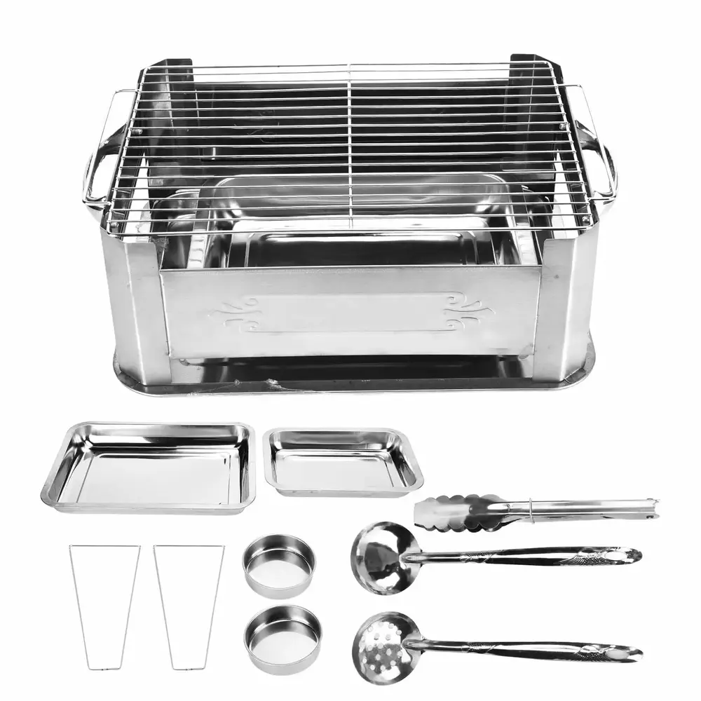Barbecue Grill Thickened Stainless Steel Grilled Fish Stove Charcoal Alcohol Grill Rectangular Grill Fish RackWindproof with Pull Handle