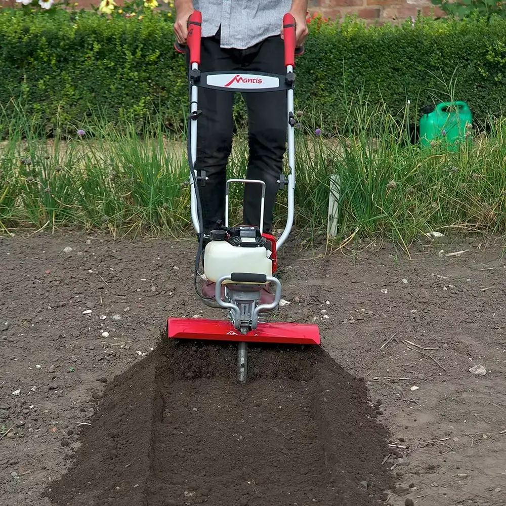 - Dependable Engine Performance: The Mantis 7566A is Equipped with a robust Honda 4-cycle engine (gas only. no fuel mix required) boasting 35cc of power. ensuring durability and reliability. The engine powers the tines at twice the speed of other tillers. guaranteeing efficient and effective tilling.