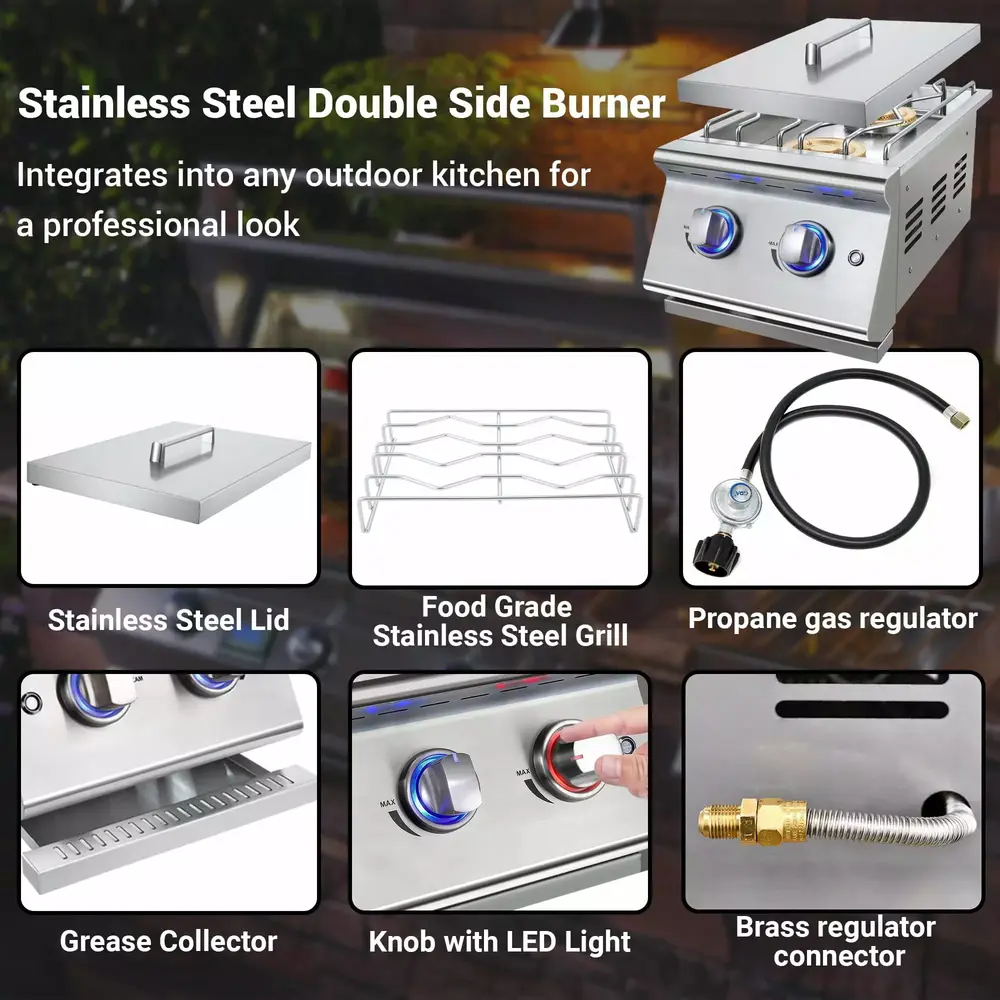 - [Quality Satisfaction& Frienly after-sale Service] This Luxury grilling side burners come with 2 year period. Our customer support team is 24*7 to provide after-sales service to make sure you are happy with the purchase.