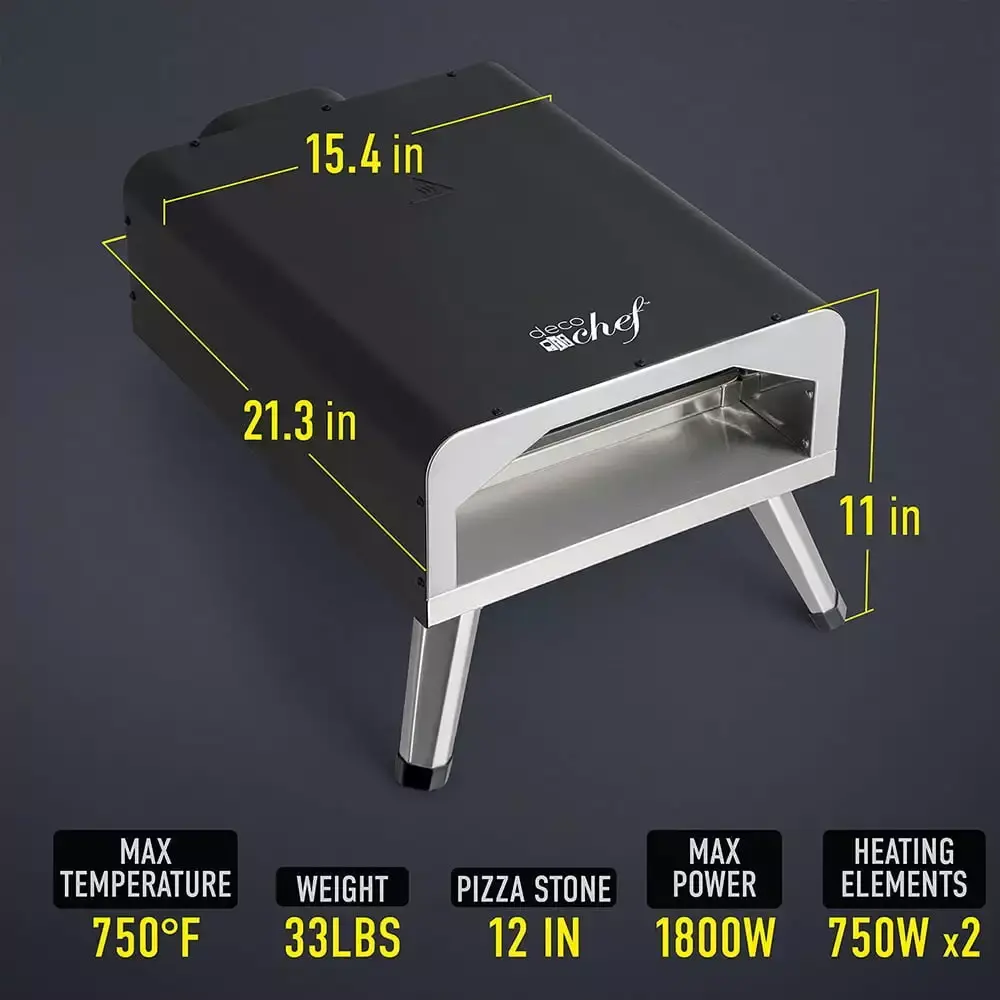 Deco Chef Electric Pizza Oven. 12-Inch Ceramic Stone and Grill. 1800W. Up to 750 Degrees for Countertop Artisan Style Pizza. 13" Double Wall Stainless Steel. Indoor and Outdoor Pizza Oven – (Open Box